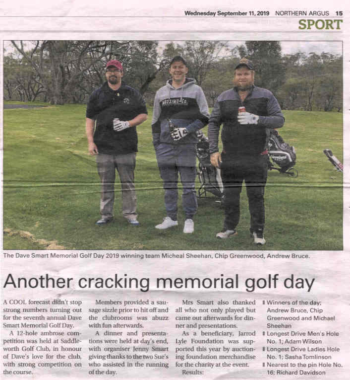 Picturesque 18-hole golf course set in natural Australian scrubland, surrounded by many native trees. It is not uncommon to see kangaroos on the course as you play. The course is Par 72, is 5,576 metres and has an Australian course rating 67. The golf course is located three kilometres west of Saddleworth on Golf Course Road.